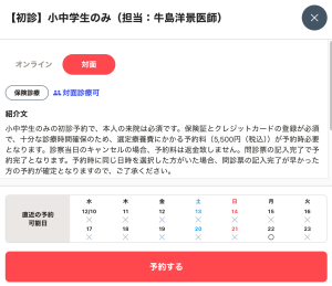予約システムmelmoのWebページにて、写真のように予約が可能と表示がでております。